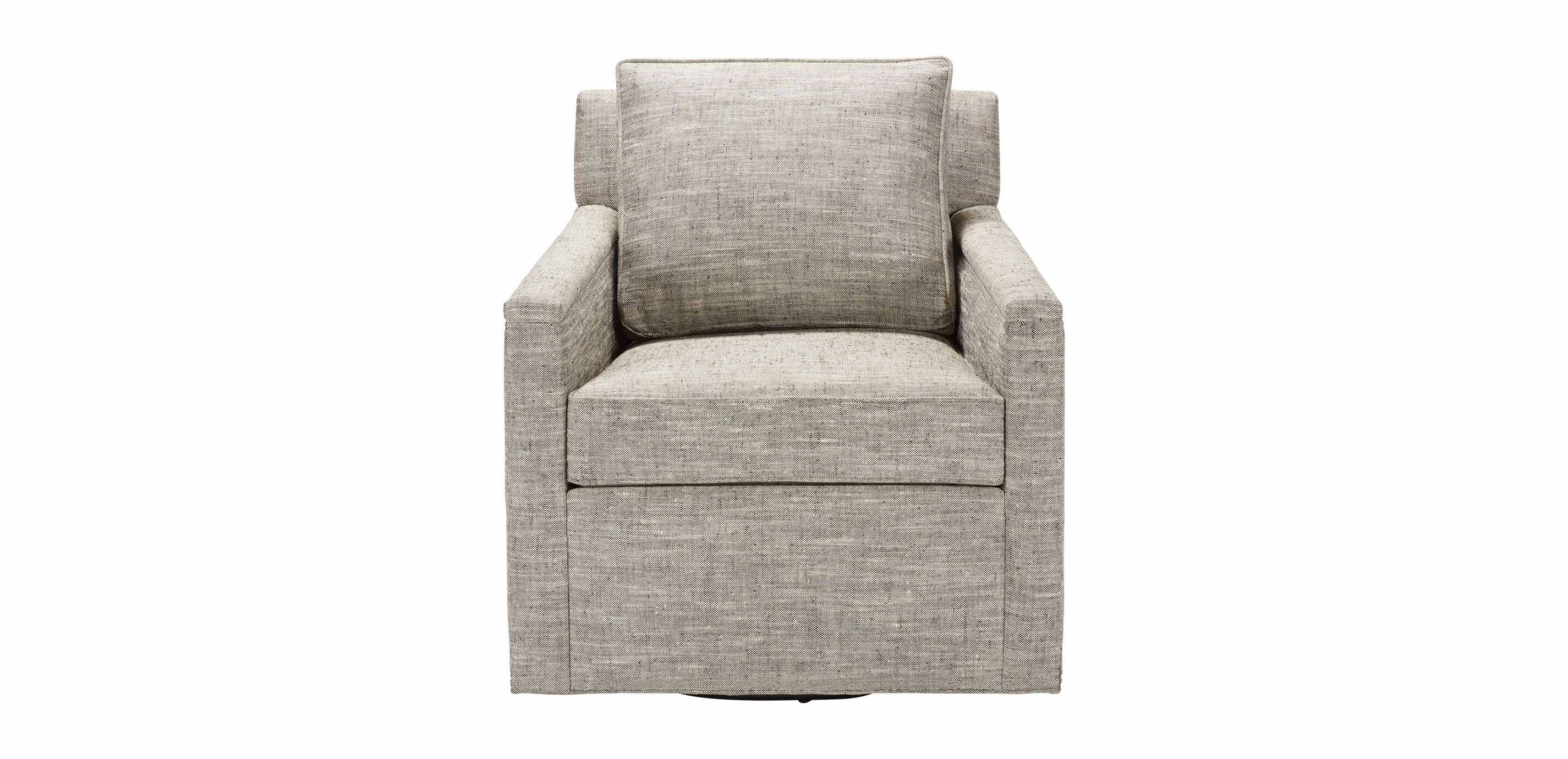 Ethan Allen is one of the longest standing furniture brands. Known for their roots in American design they continue to blend classic and modern styles that work for any aesthetic. With its sleek track arms attached back and loose welted seat cushion this swivel.